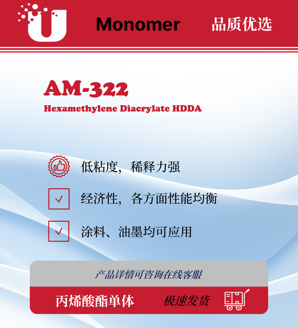 AM-322丙烯酸酯单体,低粘度,稀释力强。经济性。各方面性能均衡。作为涂料,油墨,等较为常用的产品。